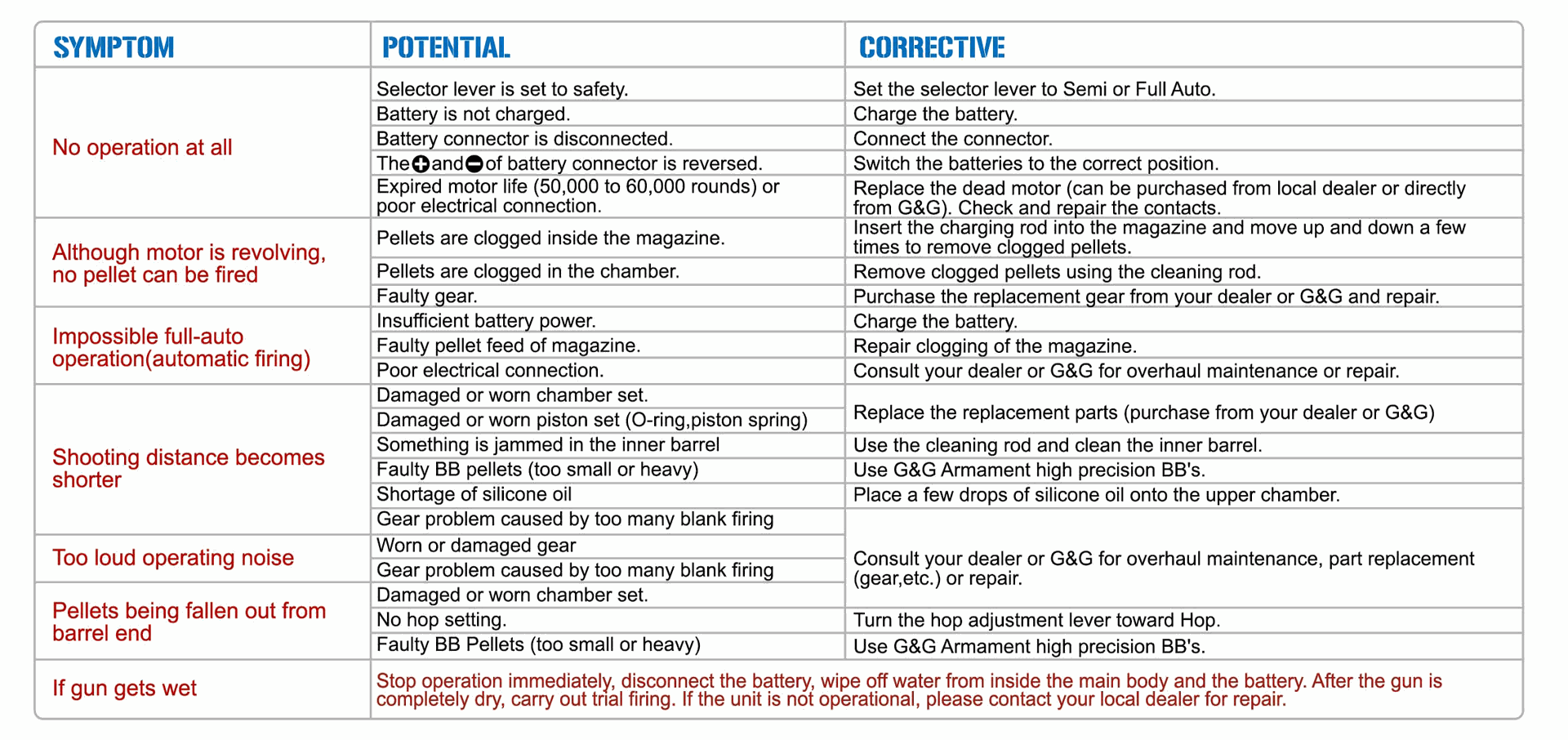 - For the best performance of your airsoft gun, only use G&G Armament competition grade BB's.
