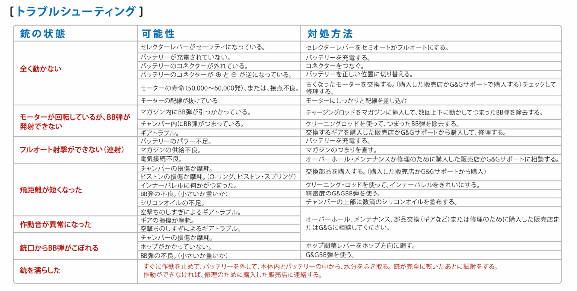 G&G ARMAMENT公式サイトで商品名で検索し、取扱説明書をダウンロードして銃身に詰まった弾丸の除去方法をご確認ください。