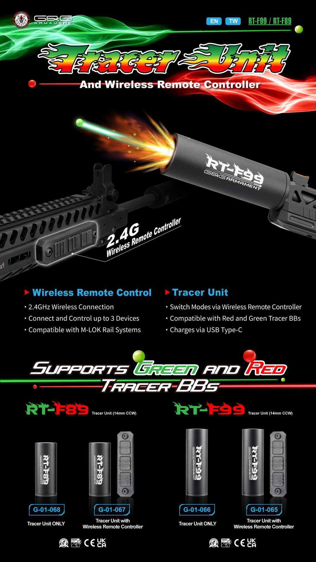 Can be Programmed via Wireless Remote Controller. Compatible with Red & Green Tracer BBs. Charges through USB Type-C.